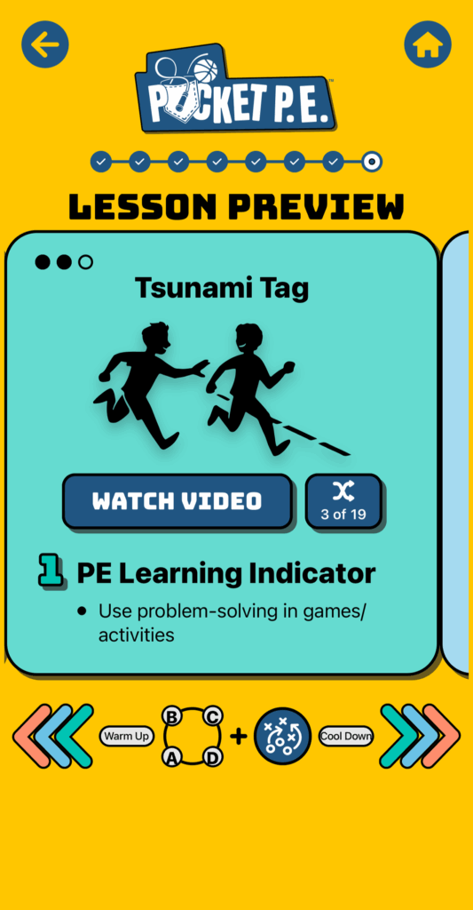 All Pocket PE lessons are aligned with national PE standards and reflect existing state-level PE standards. The app focuses on the development of 8 key movement skills across grades 3-5, with activities that progress in difficulty throughout the school year. This ensures your students are receiving standards-based instruction that develops true physical literacy.