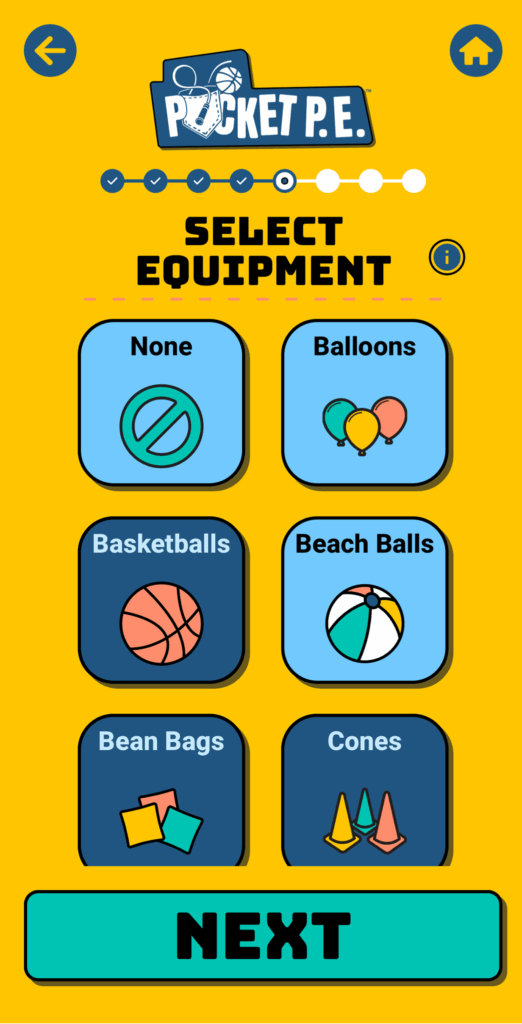 Pocket PE was built with resource limitations in mind. The app allows you to select your available setting (gym, classroom, or outdoors) and equipment, then generates appropriate lessons using what you have. Many activities require minimal or no equipment at all, making PE possible in any environment.